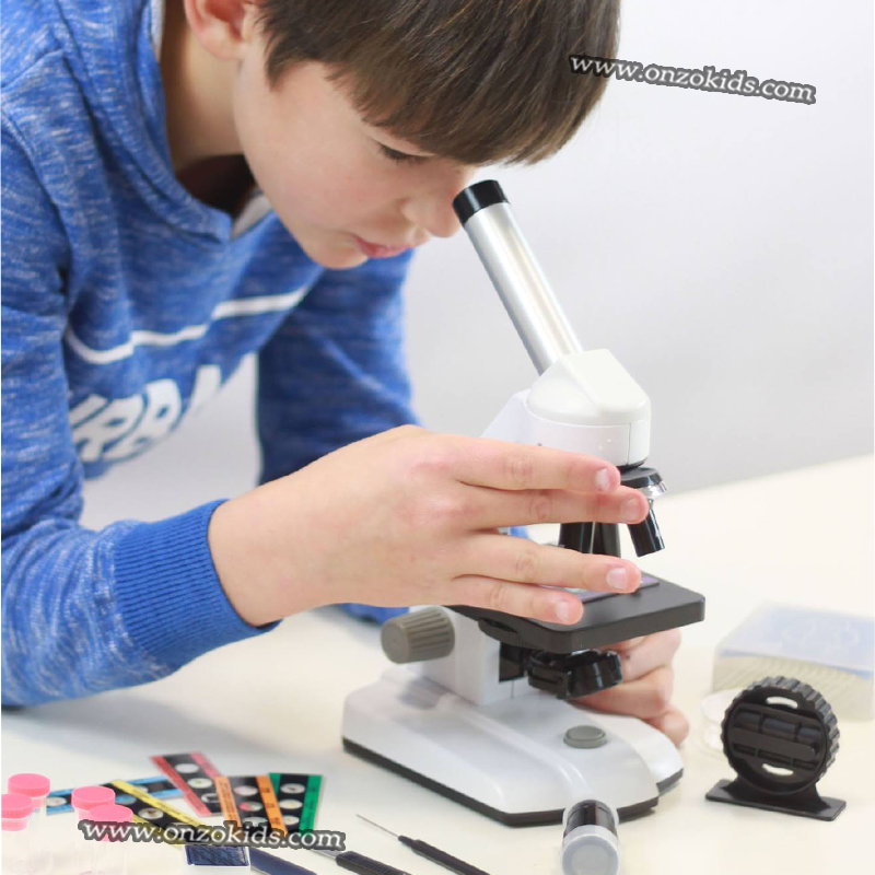 Comme un vrai scientifique ! Un microscope en métal avec optiques et oculaires en verre pour des observations de grande qualité ! 3 zooms : X 100 – X 250 – X 1000 HD. Nombreux accessoires inclus: lamelles, pince, mélangeur, étiquettes, boite de Petri, micro trancheuse…