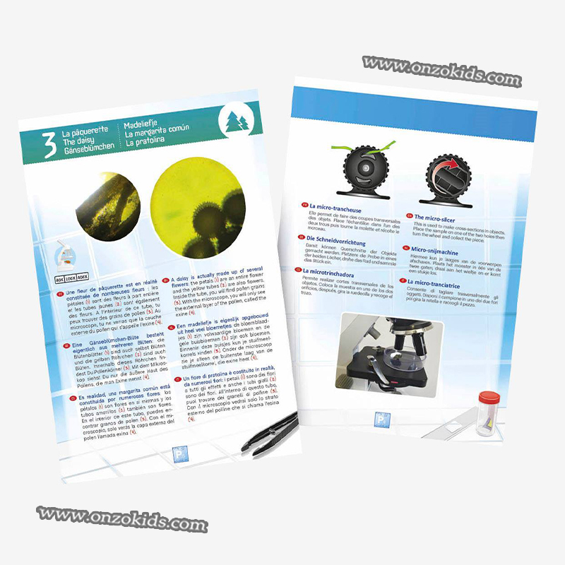 o Notice avec 50 expériences pour apprendre à préparer des lames, collecter des échantillons, régler le microscope…